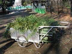 ![]() ★8.【作業を終えた竹の幹と竹枝】をリヤカーに乗せて移動。 |