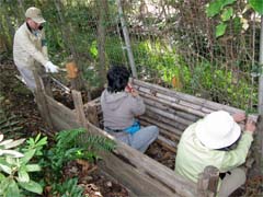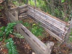 ![]() ★1.【腐葉土箱】:ベンチ廃材を利用。ボランティア団体のエコガーデンの一級建築士の会員の支援を得て作成。出来上がった腐葉土はエコガーデンで消費。撮影:エコガーデン・2009 |