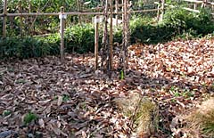 ![]() 3.【竹枝の粗朶を通路に沿って置いた】葉は後に枯れてその場に落ちる。撮影:善福寺公園・2010/01/13 |