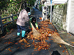 ![]() ★3.【落葉を集める】「落葉感謝祭期間」に区道で落葉を集める。撮影:公園前の区道・2009/11/29 |