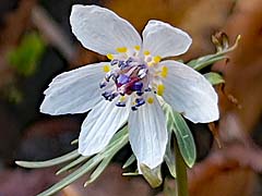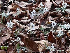 ![]() 3)セツブンソウ:落葉樹の枯葉の中から花茎をだす。撮影:2026/03/10 |