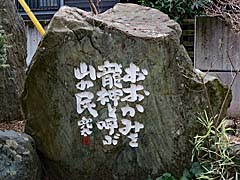 ![]() 5)金子兜太の句碑:「おおかみを龍神と呼ぶ山の民」。撮影:皆野町の壺春堂(こしゅんどう)の庭・2026/03/10 |