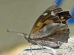 ![]() 1.テングチョウ:和名は成虫の頭部が天狗の鼻のように前方に伸びることに由来。撮影:善福寺公園・2006/03/28 |