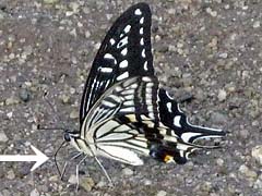 ![]() 2.アゲハチョウの吸水。撮影:杉並区北西部。  |