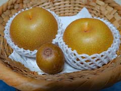 ![]() 2.赤梨系のナシ2個:撮影:2025/09/06。  |