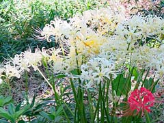 ![]() 9.シロバナマンジュシャゲ-2: 学名:Lycoris x albiflora Koidz.。ヒガンバナ×ショウキズイセン。 |
